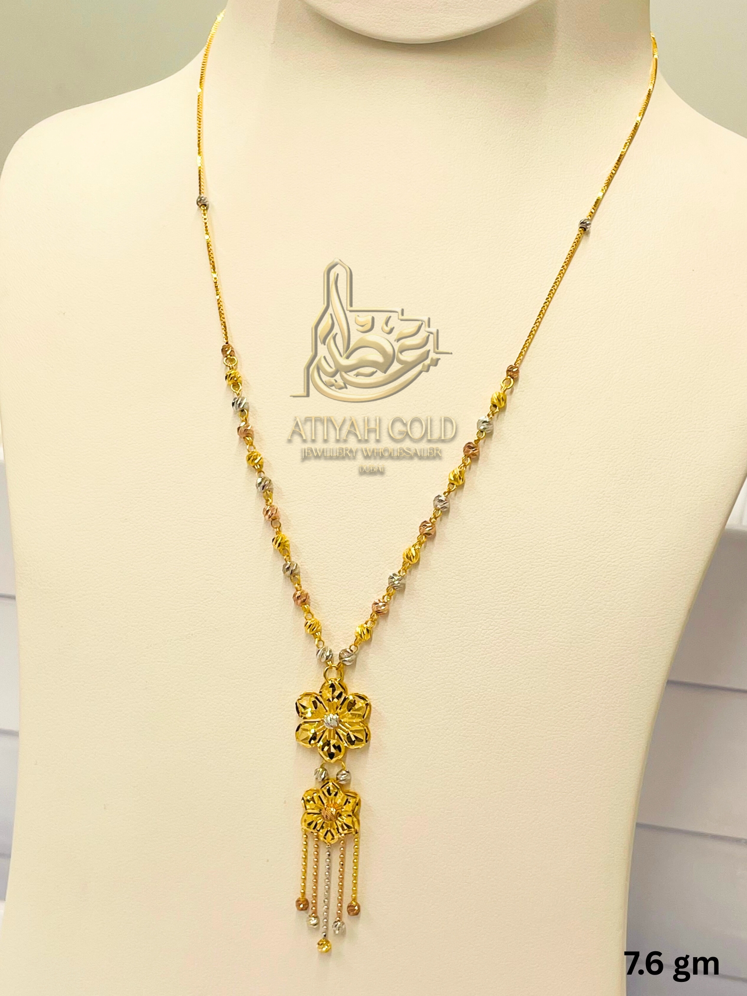 • Rhythmic Tri-Color Beading: The chain is adorned with a sophisticated sequence of yellow, rose, and white gold-toned textured beads, creating a dynamic shimmer with every movement.