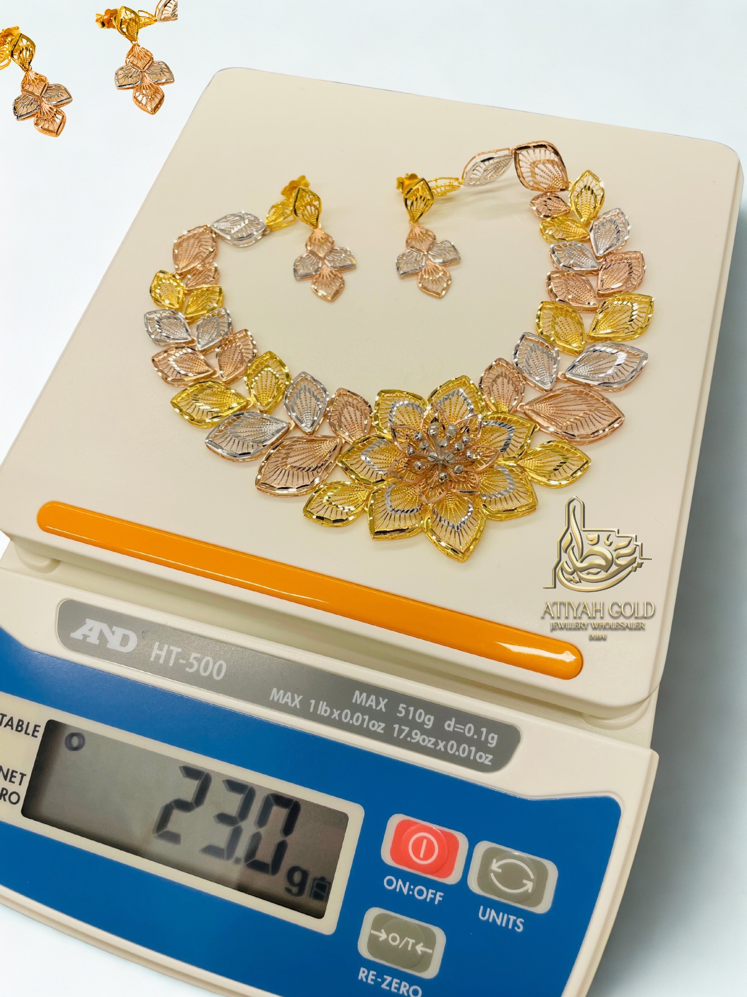 imperial 21k tri color filigree floral setImperial 21k Tri-Color Filigree Floral Set